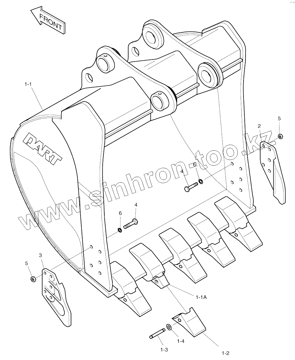 Каталог запасных частей к технике: Doosan SOLAR 170W-V. BUCKET-0.73M3 (36")-SIDE PIN