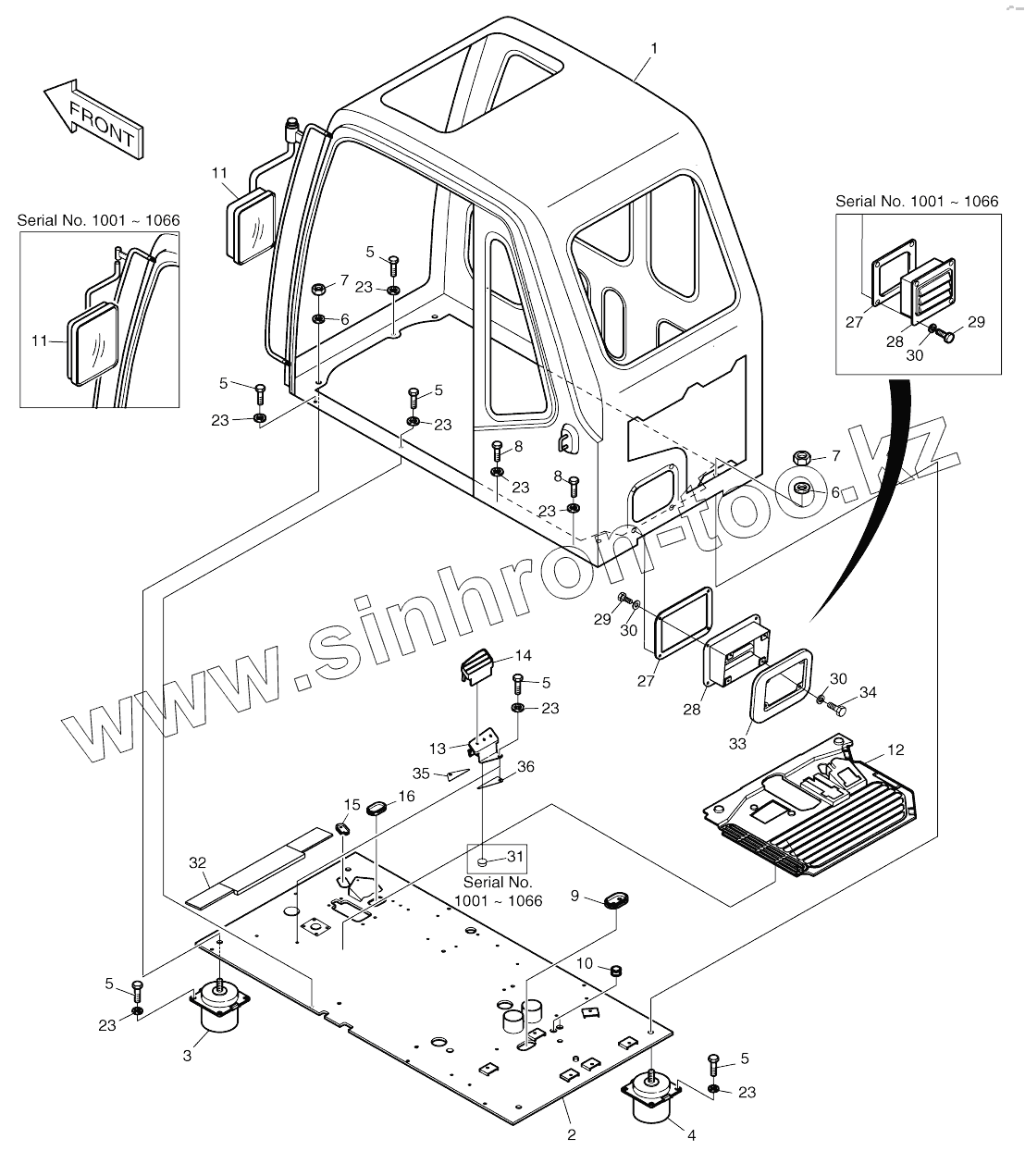Каталог запасных частей к технике: Doosan SOLAR 170W-V. CABIN ASSY