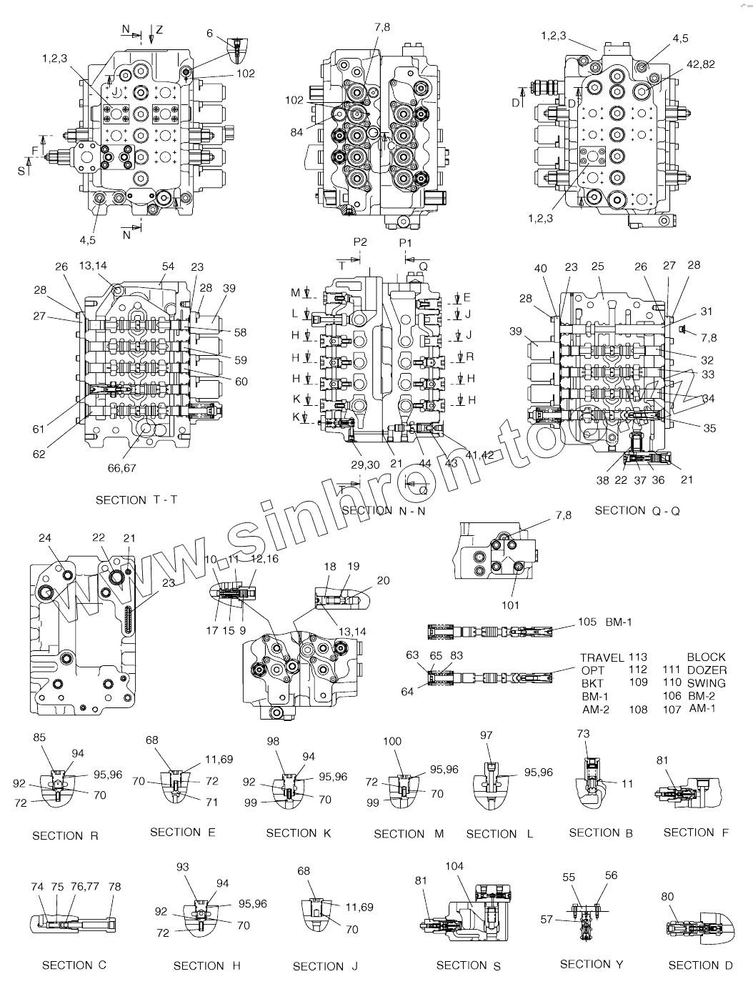 Каталог запасных частей к технике: Doosan SOLAR 170W-V. CONTROL VALVE