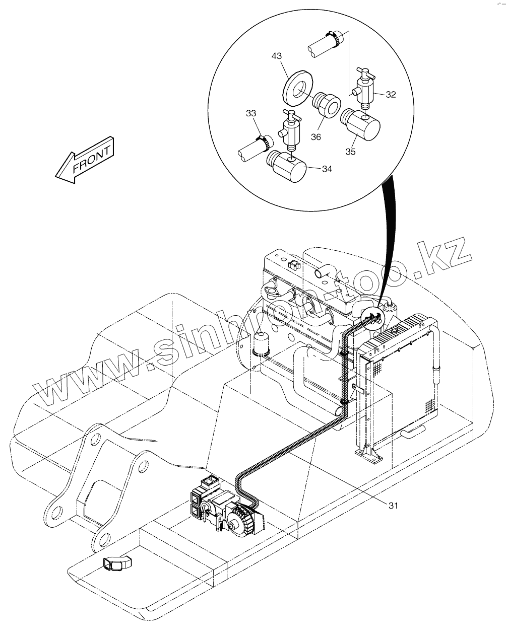 Каталог запасных частей к технике: Doosan SOLAR 170W-V. HEATER PIPING