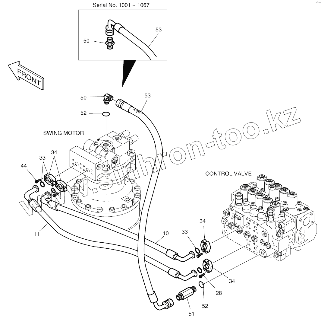 Каталог запасных частей к технике: Doosan SOLAR 170W-V. MAIN PIPING (4)-SWING
