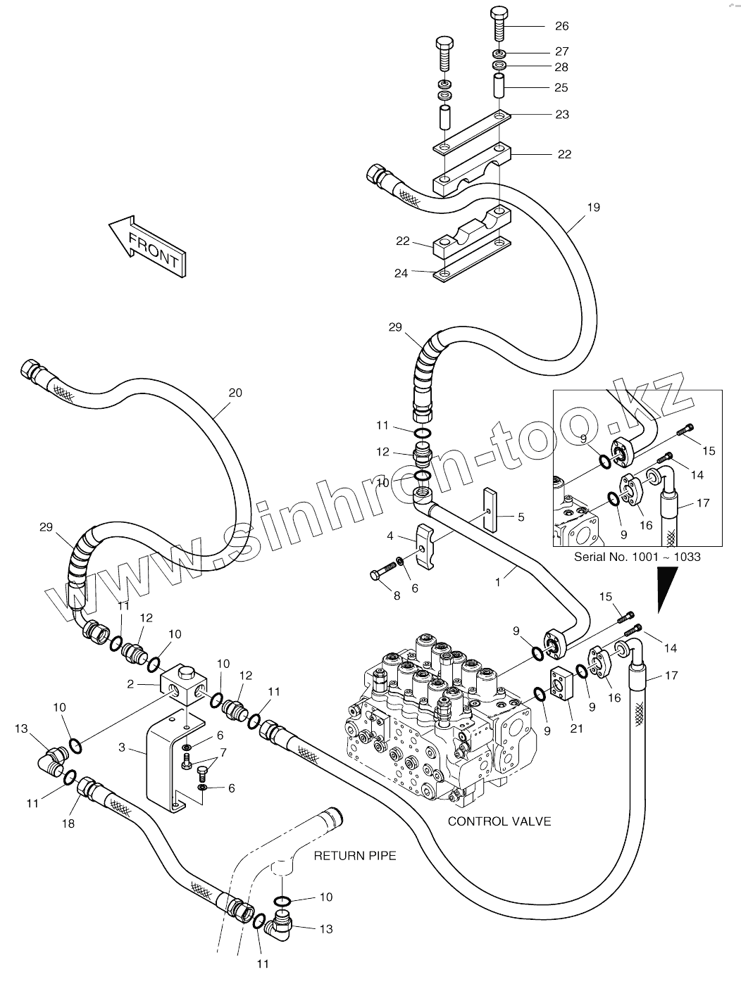 Каталог запасных частей к технике: Doosan SOLAR 170W-V. MAIN PIPING-ONE AND TWO WAY
