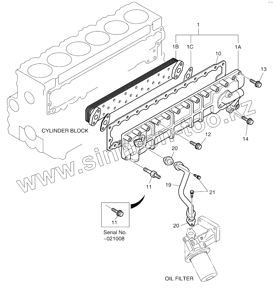 Каталог запасных частей к технике: Doosan SOLAR 170W-V. OIL COOLER