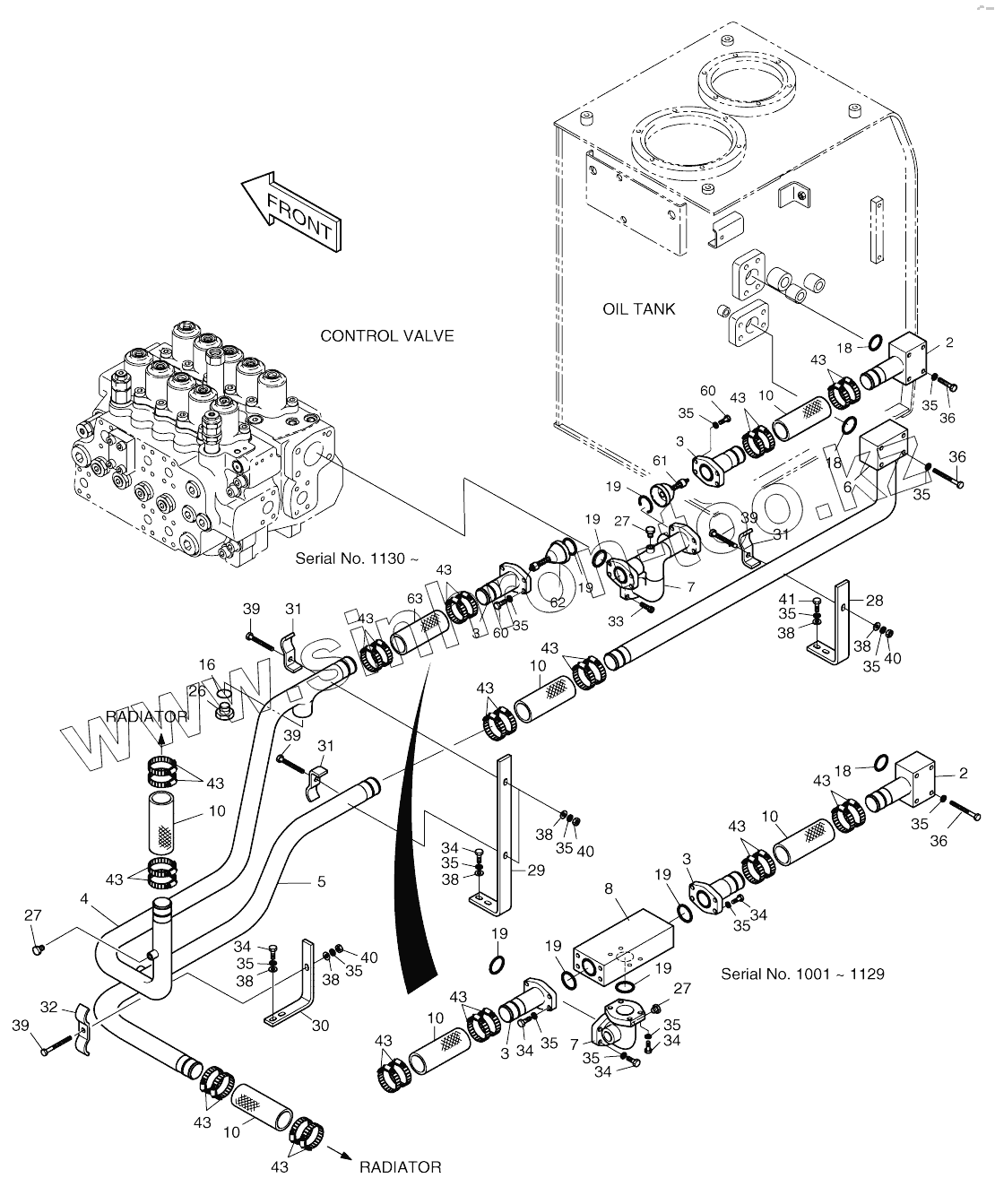 Каталог запасных частей к технике: Doosan SOLAR 170W-V. OIL COOLER PIPING (1)