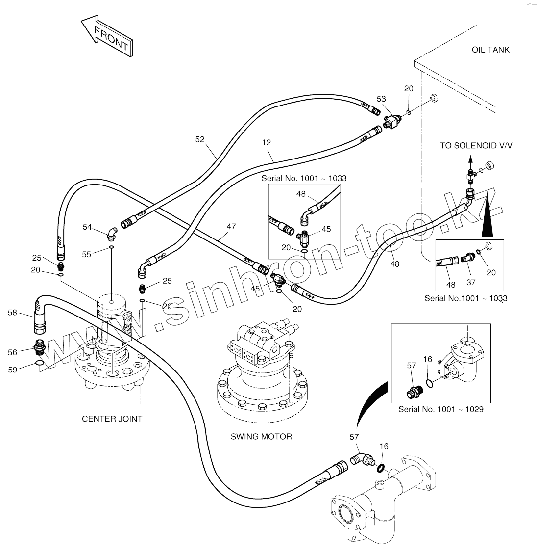 Каталог запасных частей к технике: Doosan SOLAR 170W-V. OIL COOLER PIPING (3)