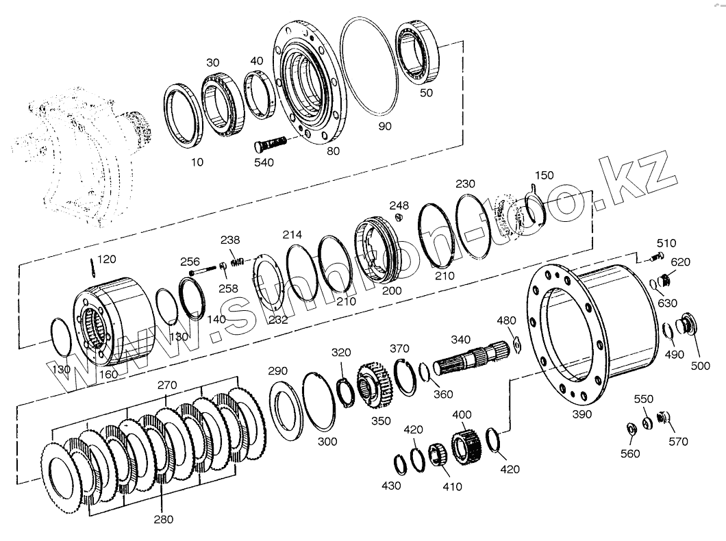 Каталог запасных частей к технике: Doosan SOLAR 170W-V. OUTPUT-FRONT AXLE
