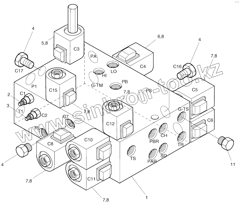 Каталог запасных частей к технике: Doosan SOLAR 170W-V. PILOT AND T/M SUPPLY VALVE