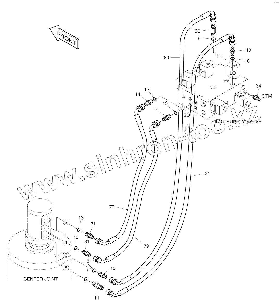 Каталог запасных частей к технике: Doosan SOLAR 170W-V. PILOT PIPING (10)