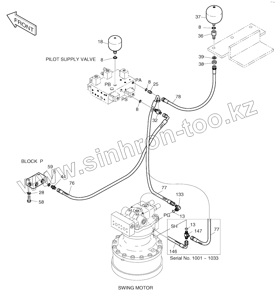 Каталог запасных частей к технике: Doosan SOLAR 170W-V. PILOT PIPING (2)