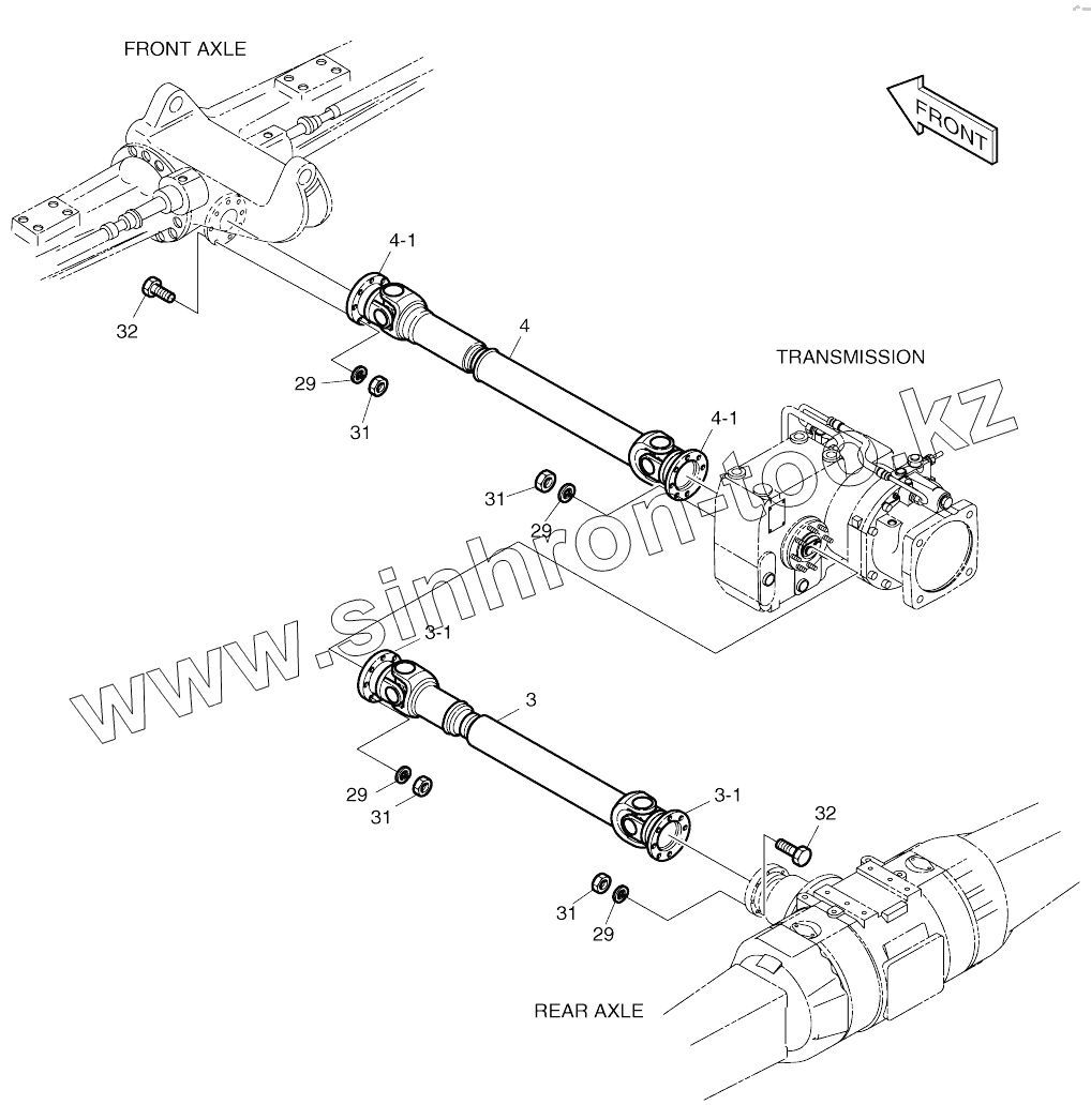 Каталог запасных частей к технике: Doosan SOLAR 170W-V. POWER TRAIN (4)-PROPELLER SHAFT