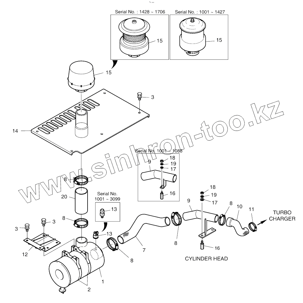 Каталог запасных частей к технике: Doosan SOLAR 180W-V. AIR CLEANER ASSY