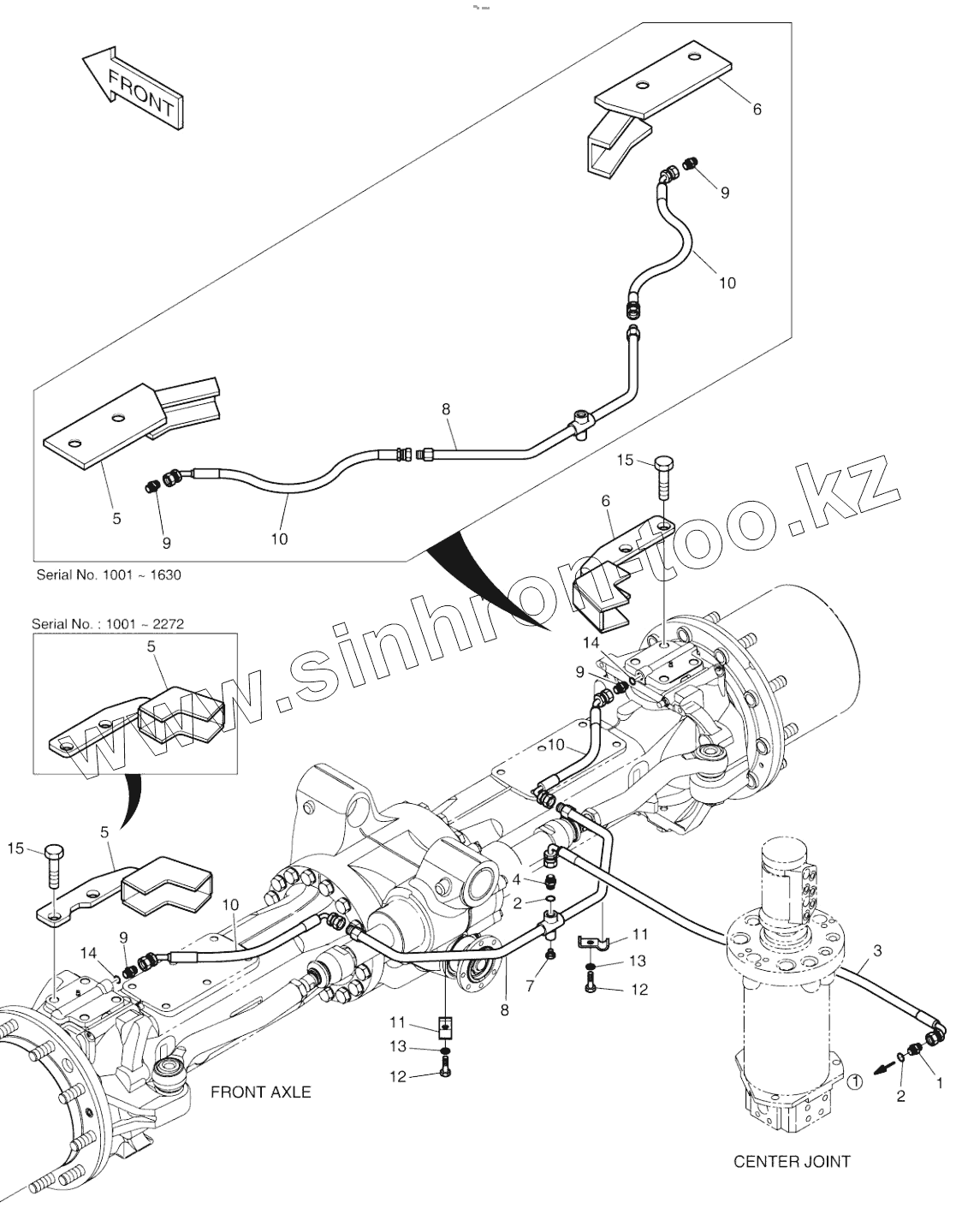 Каталог запасных частей к технике: Doosan SOLAR 180W-V. BRAKE PIPING (1)-FRONT