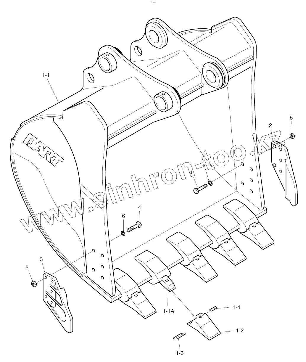 Каталог запасных частей к технике: Doosan SOLAR 180W-V. BUCKET-0.72M3 (42")-VERTICAL PIN