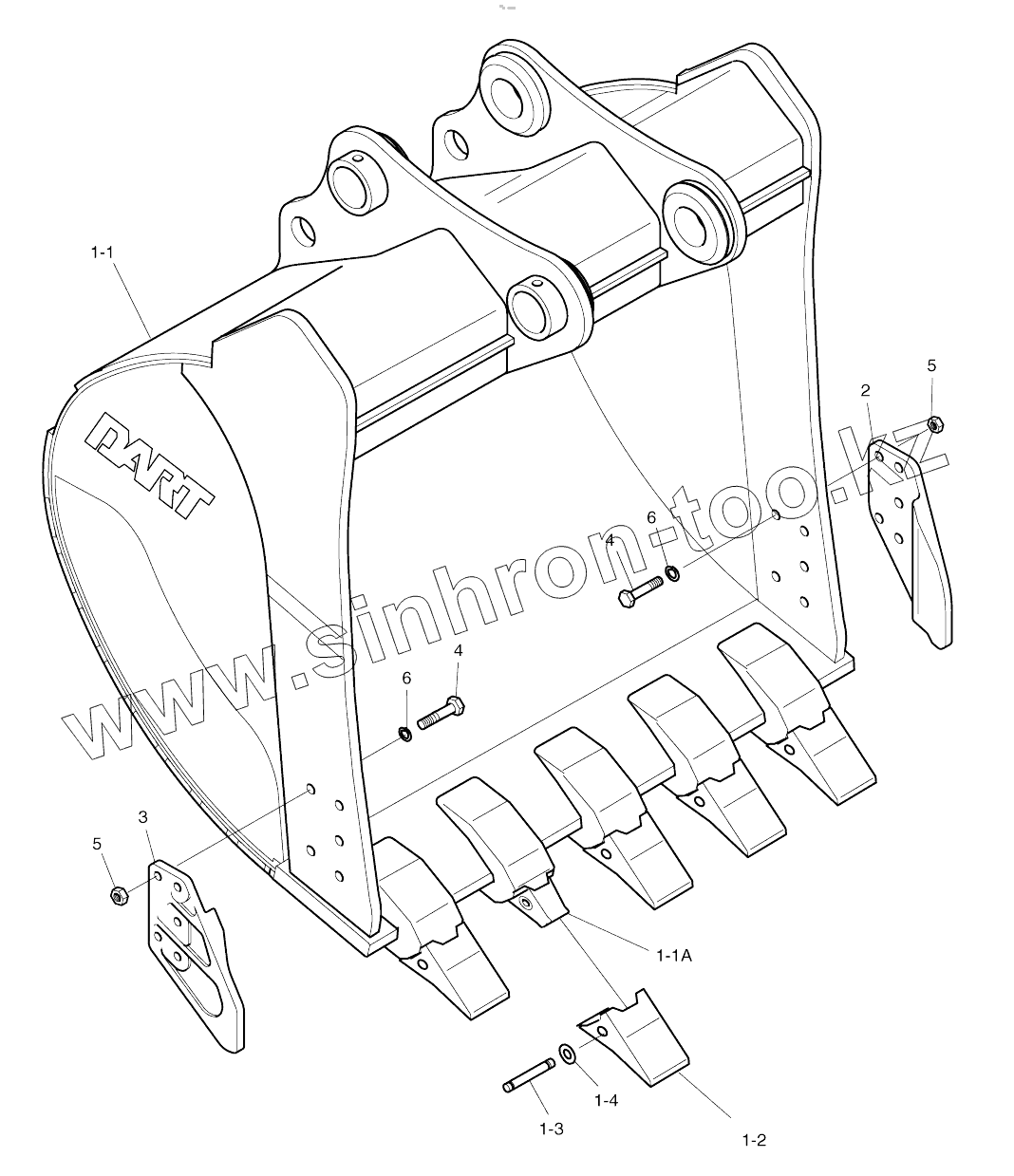 Каталог запасных частей к технике: Doosan SOLAR 180W-V. BUCKET-0.73M3 (36")-SIDE PIN
