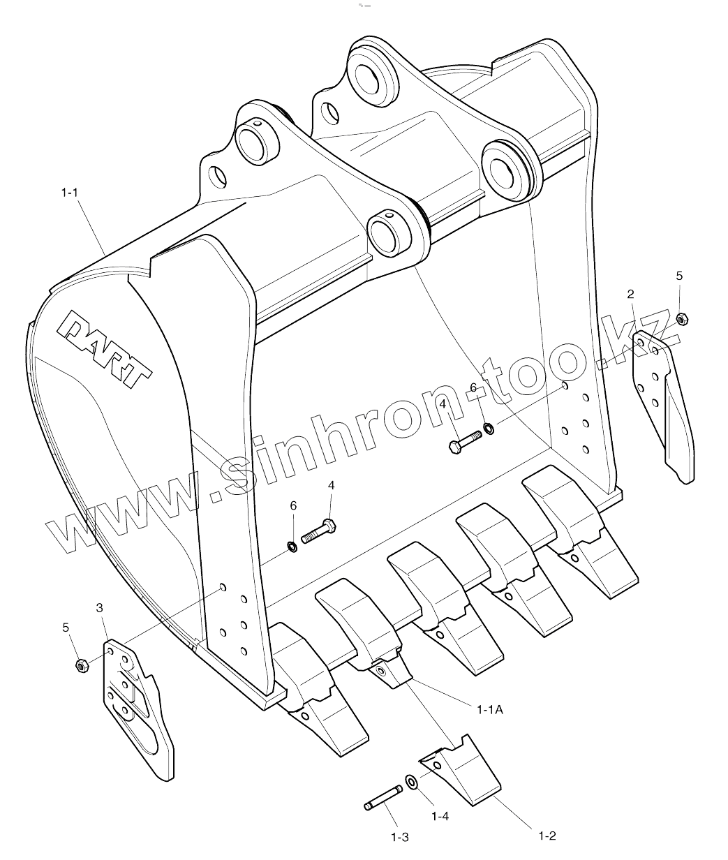 Каталог запасных частей к технике: Doosan SOLAR 180W-V. BUCKET-0.80M3 (42")-SIDE PIN