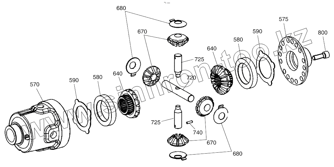 Каталог запасных частей к технике: Doosan SOLAR 180W-V. DIFFERENTIAL GEAR - FRONT AXLE (1944-)