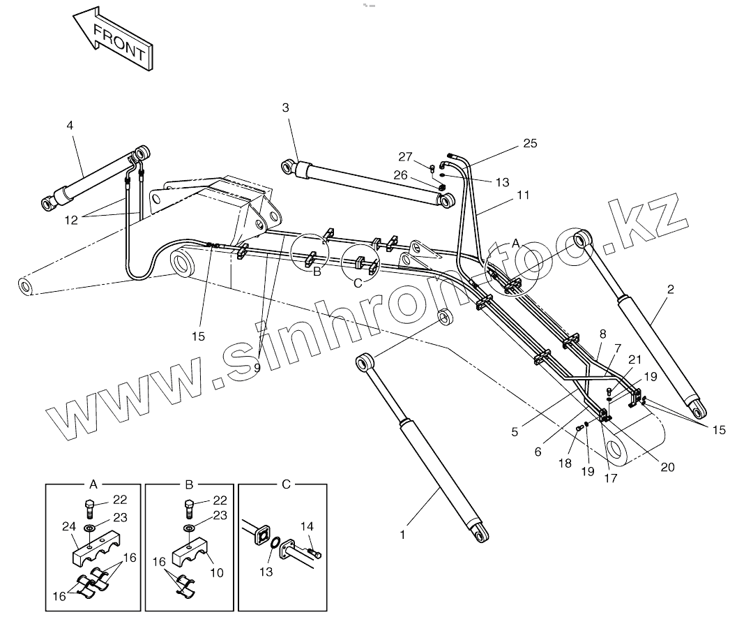 Каталог запасных частей к технике: Doosan SOLAR 180W-V. FRONT PIPING