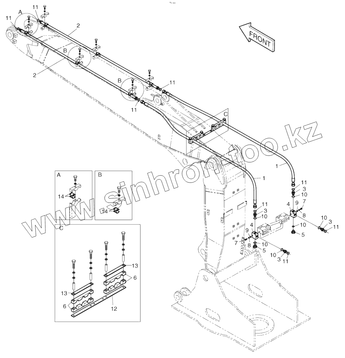 Каталог запасных частей к технике: Doosan SOLAR 180W-V. FRONT PIPING-PE3C-ARTI.BOOM