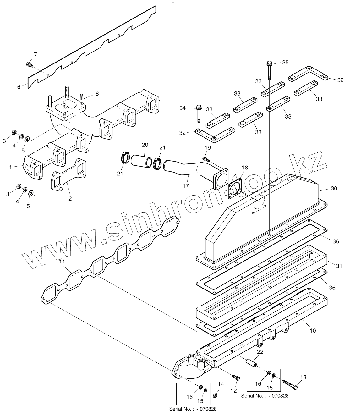 Каталог запасных частей к технике: Doosan SOLAR 180W-V. INTAKE AND EXHAUST MANIFOLD