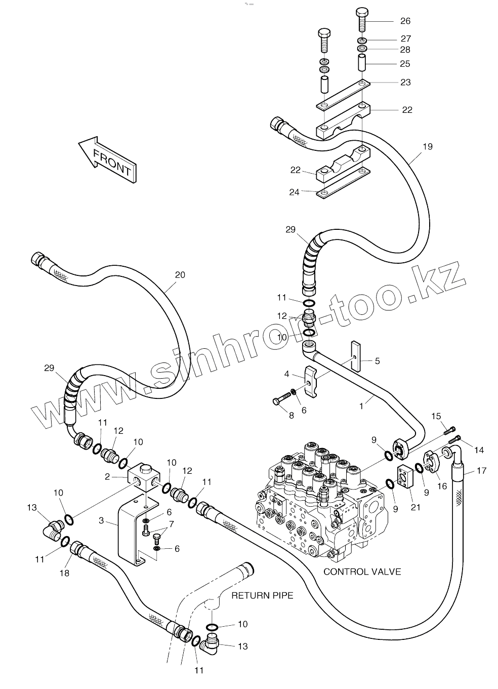 Каталог запасных частей к технике: Doosan SOLAR 180W-V. MAIN PIPING-ONE AND TWO WAY