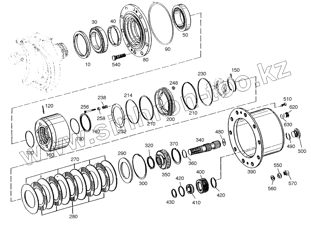 Каталог запасных частей к технике: Doosan SOLAR 180W-V. OUTPUT-FRONT AXLE (1001-1630)