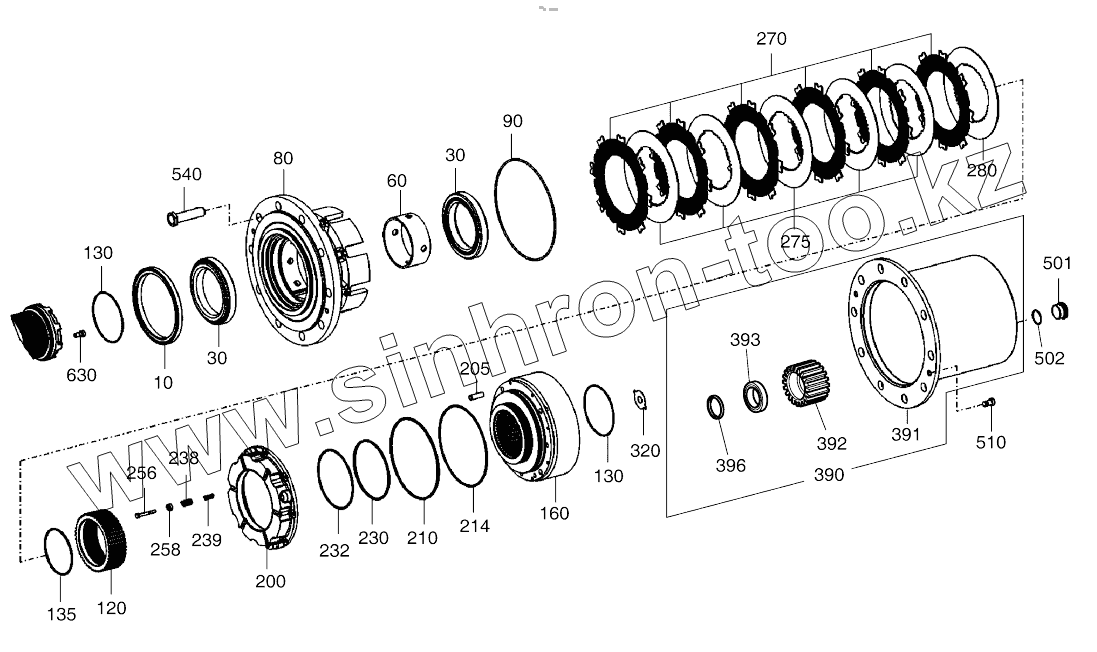 Каталог запасных частей к технике: Doosan SOLAR 180W-V. OUTPUT-FRONT AXLE (1944-)
