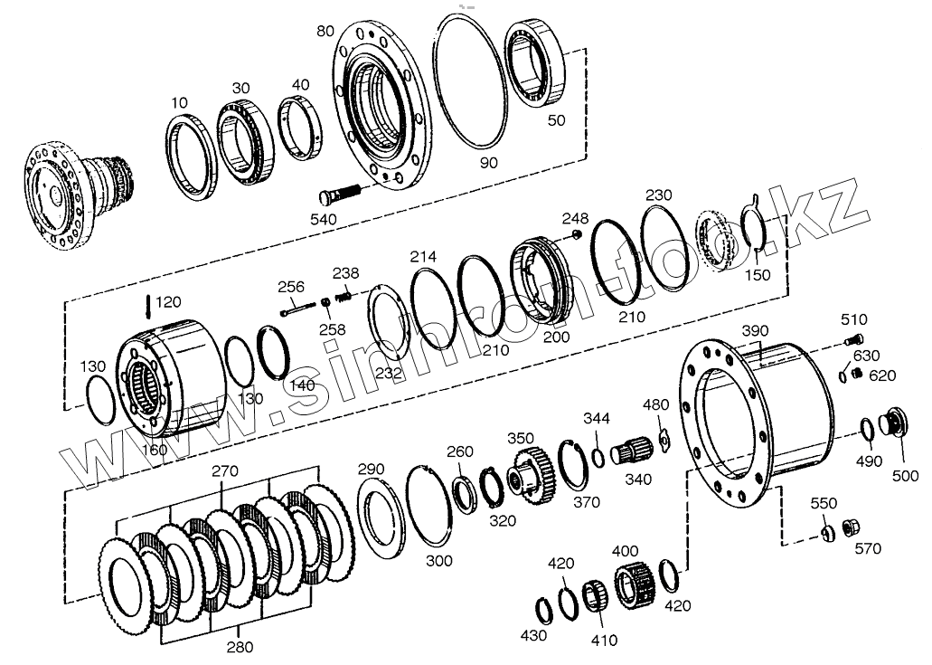 Каталог запасных частей к технике: Doosan SOLAR 180W-V. OUTPUT-REAR AXLE (1001 - 1630)