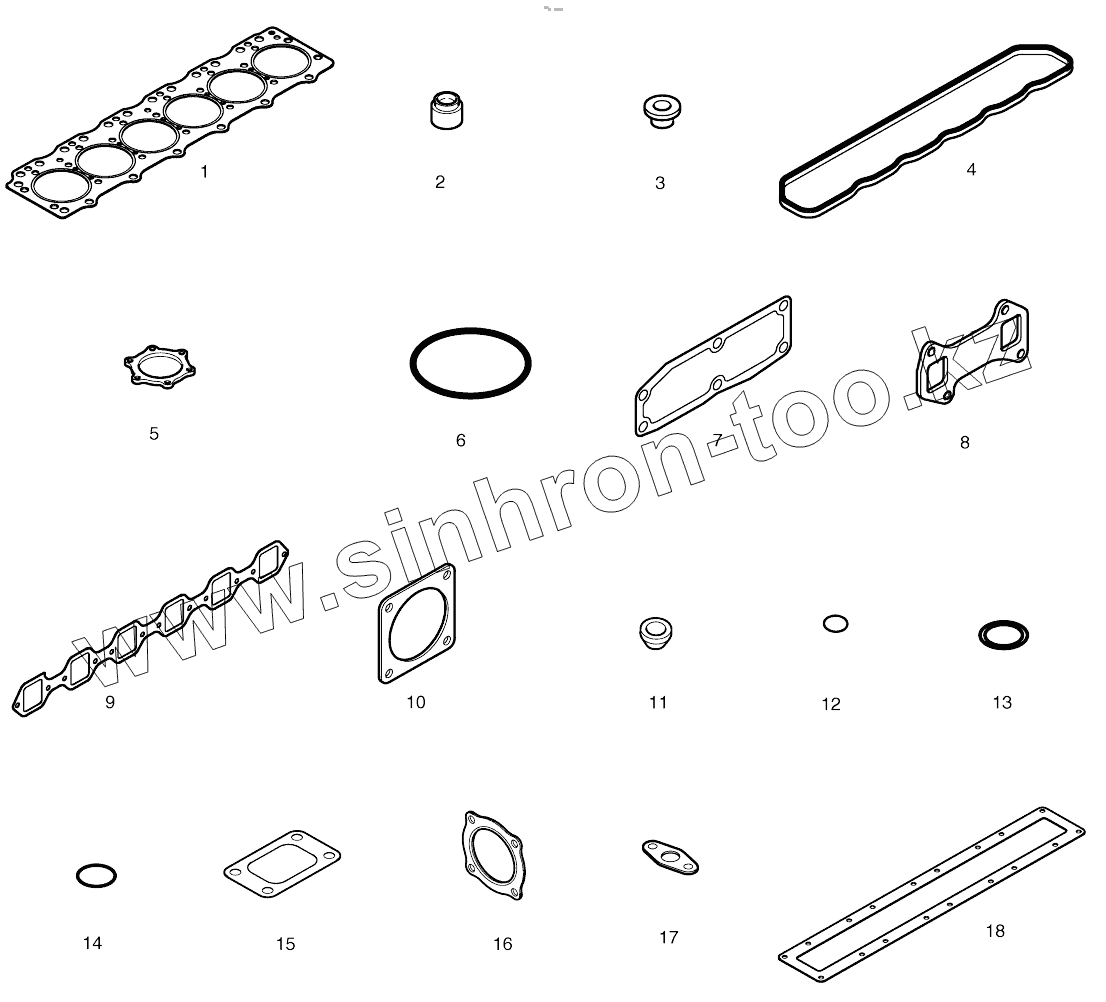 Каталог запасных частей к технике: Doosan SOLAR 180W-V. OVER HAUL GASKET KIT-TOP