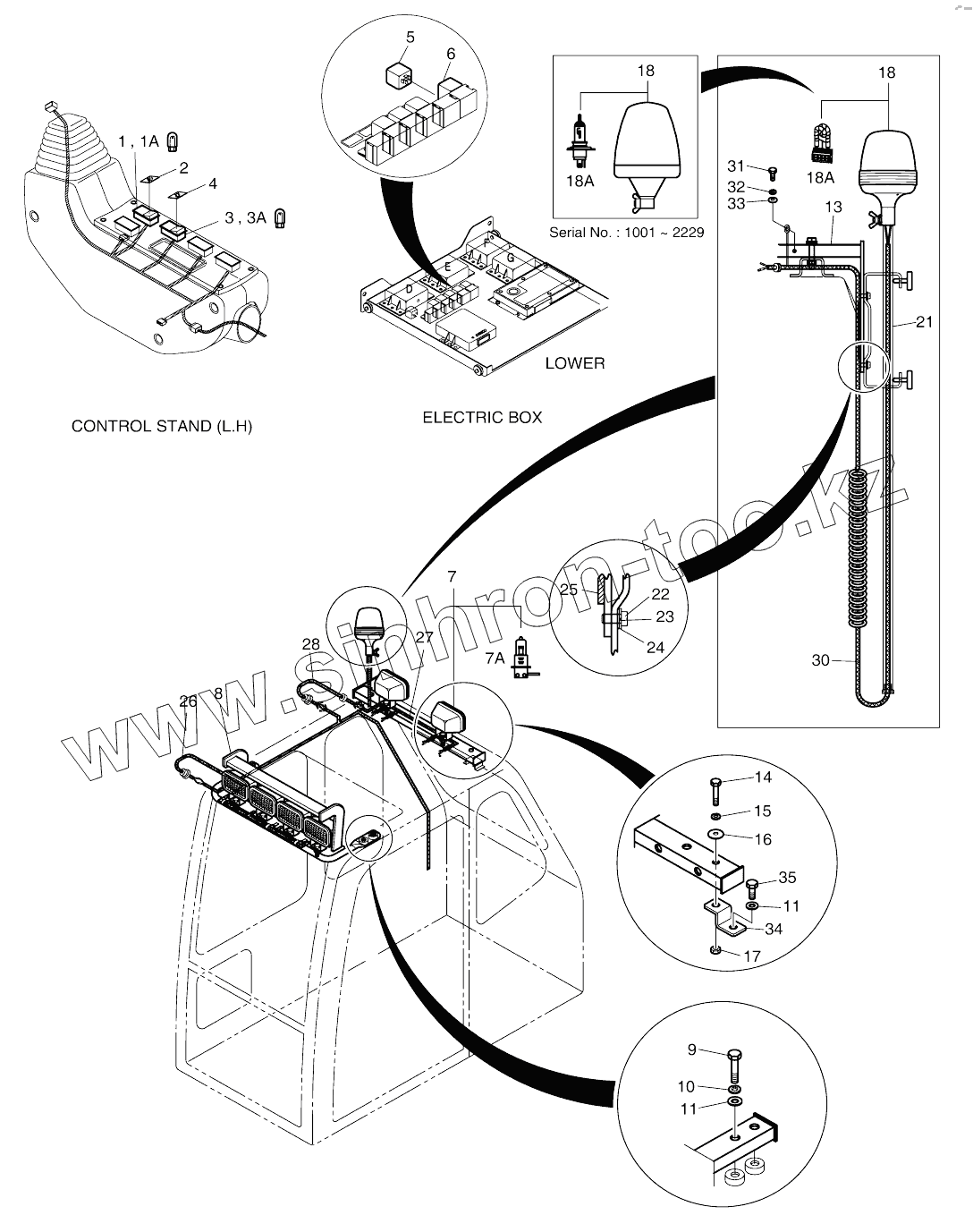 Каталог запасных частей к технике: Doosan SOLAR 210W-V. 6-LAMP AND BEACON (TELESCOPIC)