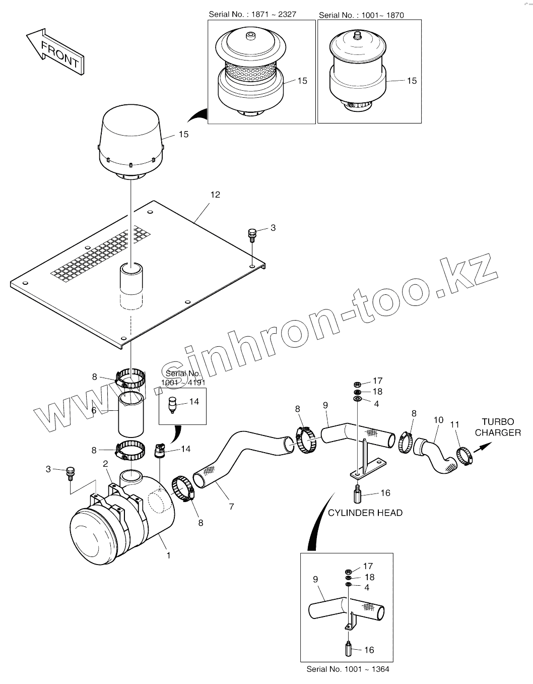 Каталог запасных частей к технике: Doosan SOLAR 210W-V. AIR CLEANER