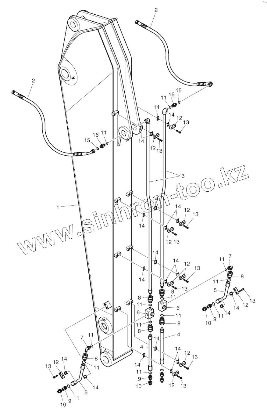 Каталог запасных частей к технике: Doosan SOLAR 210W-V. ARM PIPING-ROTATING