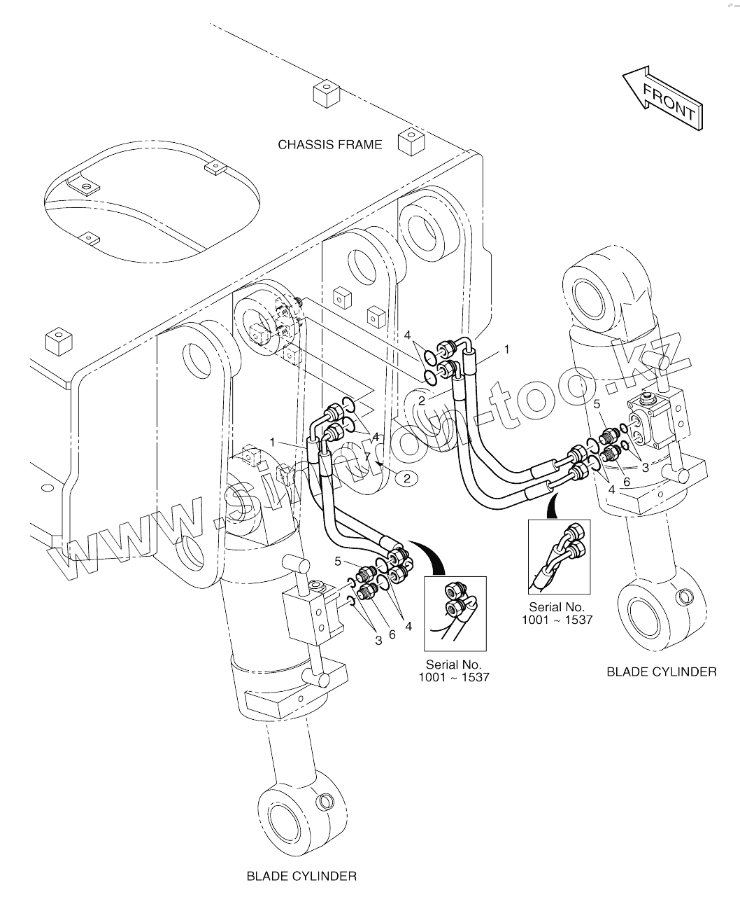 Каталог запасных частей к технике: Doosan SOLAR 210W-V. BLADE PIPING (1001-1989)