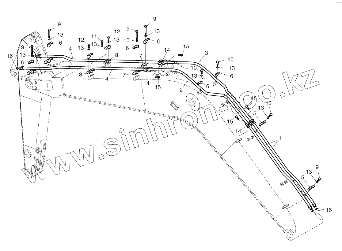 Каталог запасных частей к технике: Doosan SOLAR 210W-V. BOOM PIPING-ROTATING