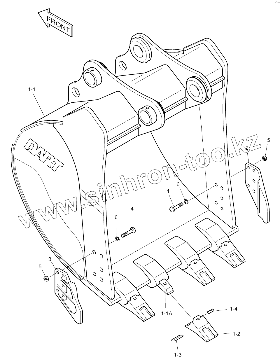 Каталог запасных частей к технике: Doosan SOLAR 210W-V. BUCKET 0.67mВі (36")-VERTICAL PIN