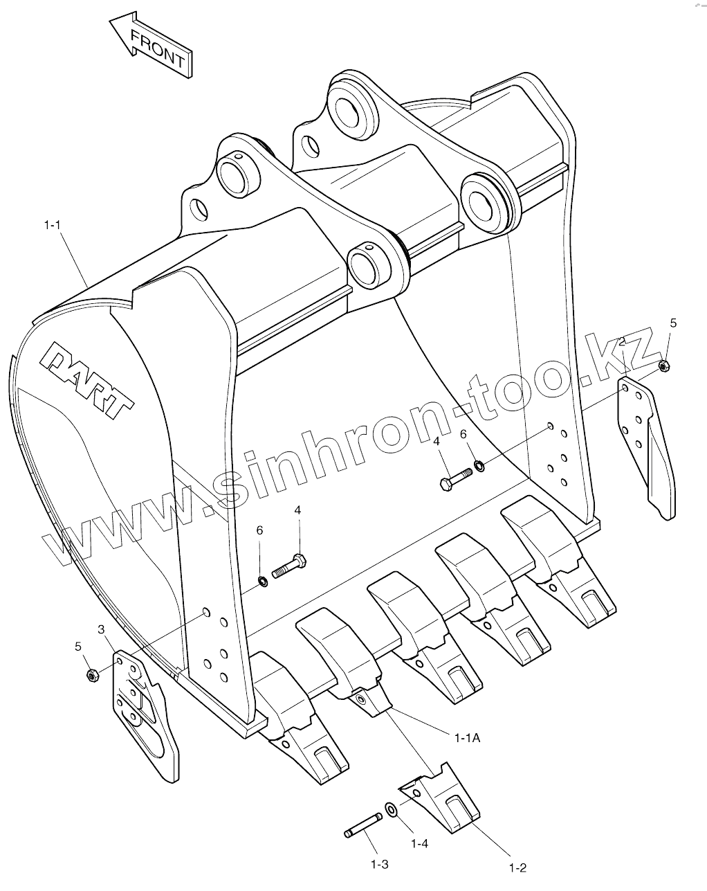 Каталог запасных частей к технике: Doosan SOLAR 210W-V. BUCKET 0.90mВі (42")-SIDE PIN