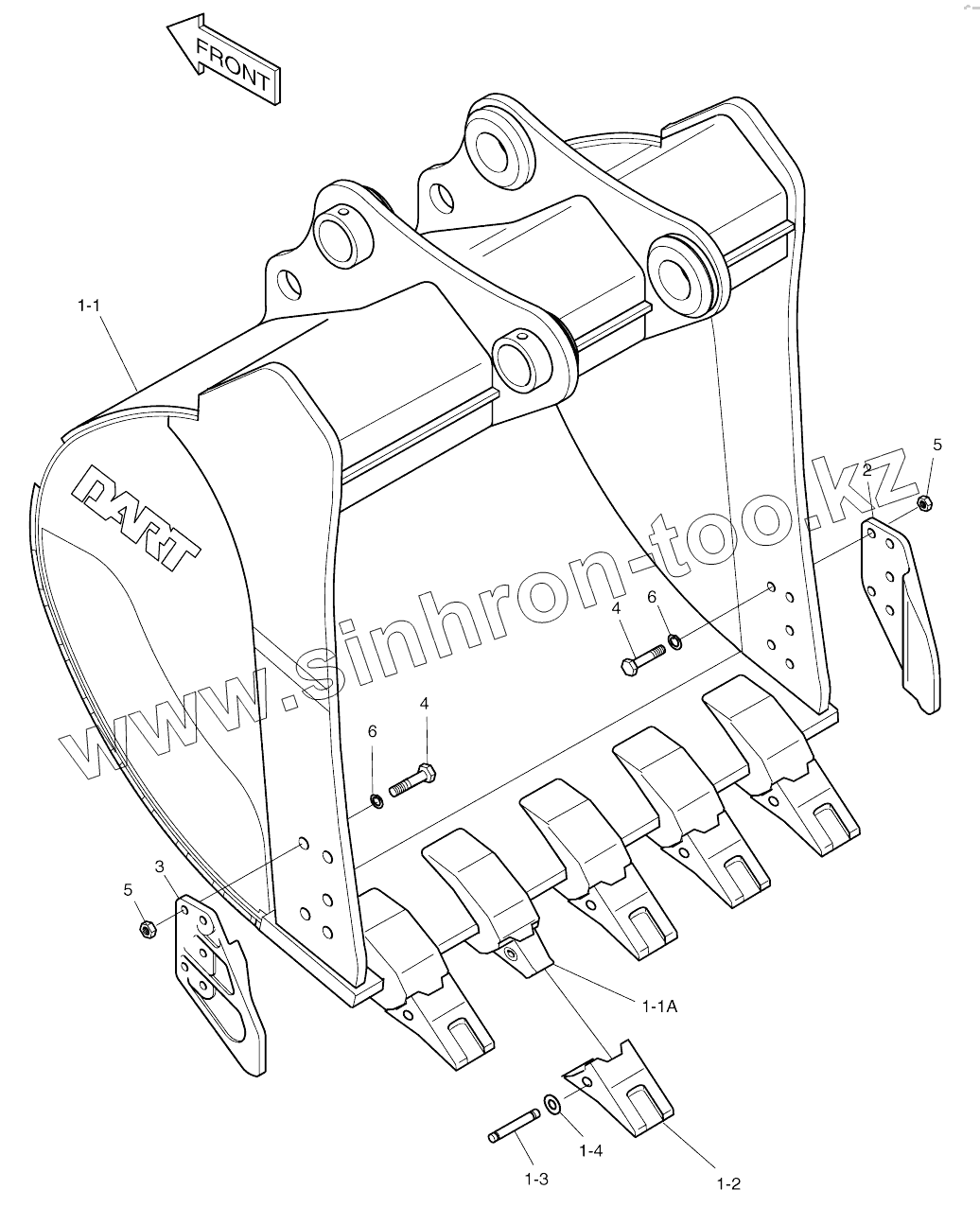 Каталог запасных частей к технике: Doosan SOLAR 210W-V. BUCKET 1.24mВі (54")-SIDE PIN