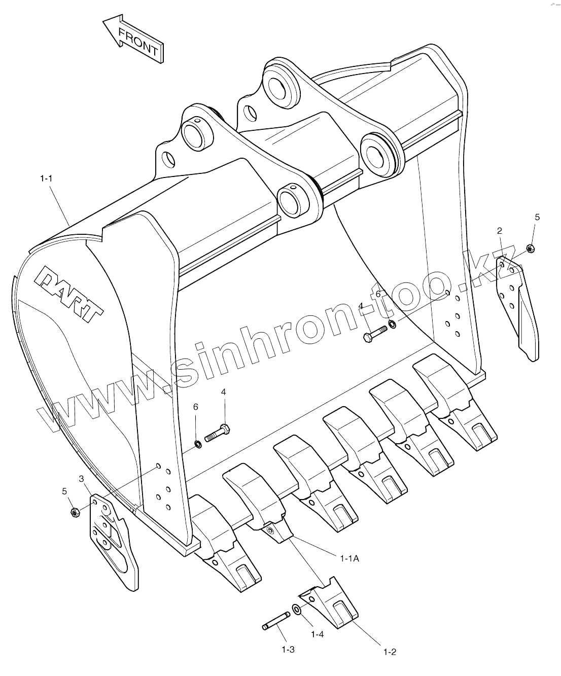 Каталог запасных частей к технике: Doosan SOLAR 210W-V. BUCKET 1.32mВі (57")-SIDE PIN