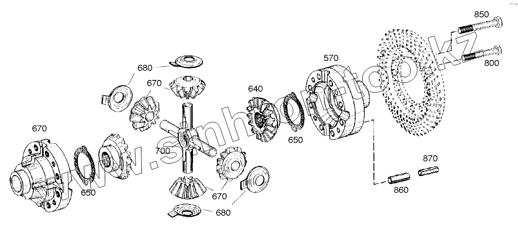 Каталог запасных частей к технике: Doosan SOLAR 210W-V. DIFFERENTIAL-REAR AXLE (1001-2131)