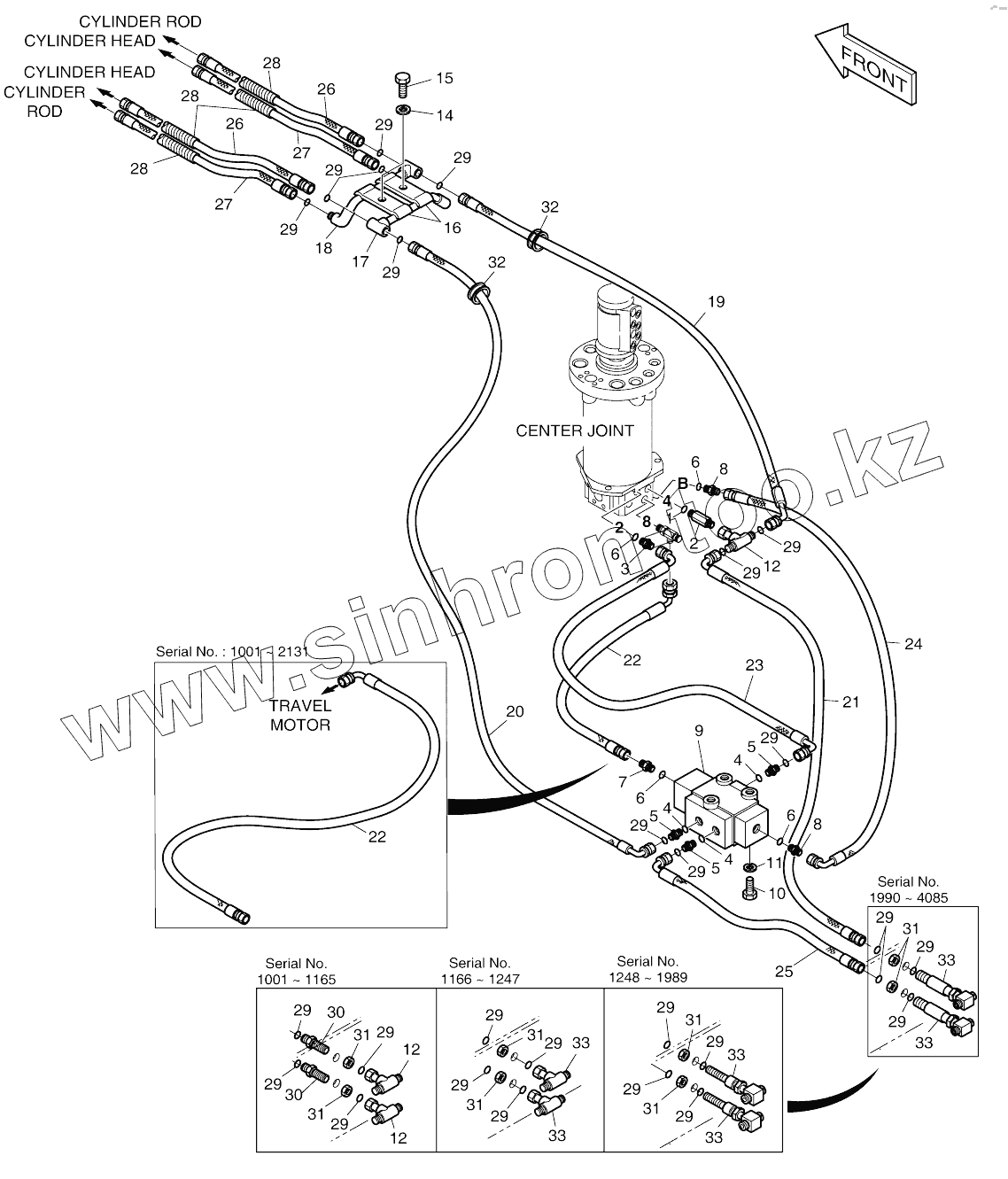Каталог запасных частей к технике: Doosan SOLAR 210W-V. DOZER AND OUTRIGGER PIPING
