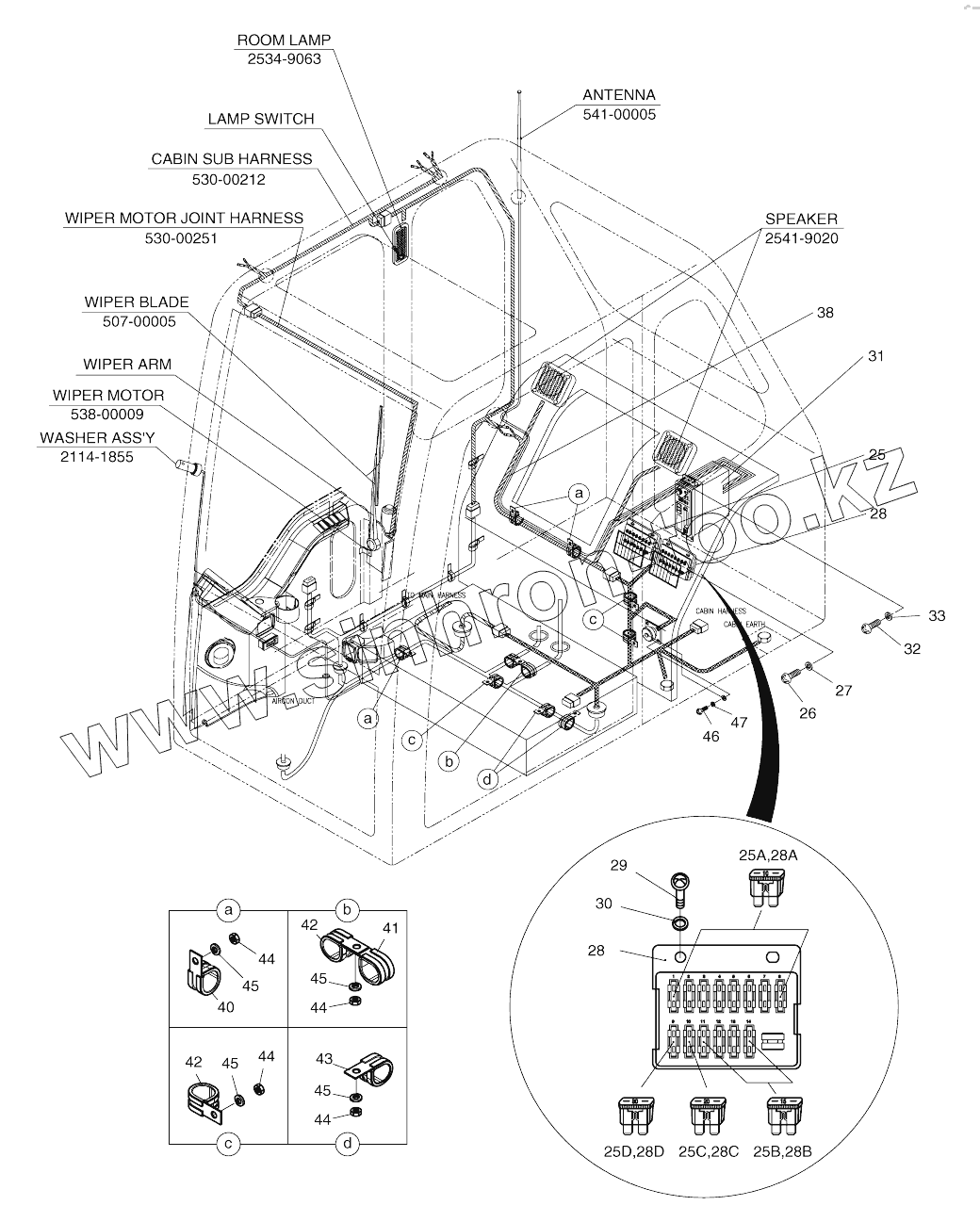 Каталог запасных частей к технике: Doosan SOLAR 210W-V. ELECTRIC PARTS (4)-CABIN