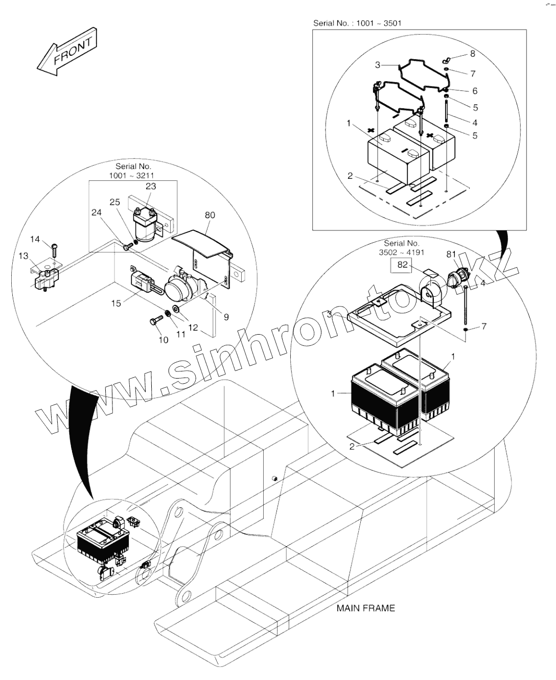 Каталог запасных частей к технике: Doosan SOLAR 210W-V. ELECTRIC PARTS (5)-BATTERY