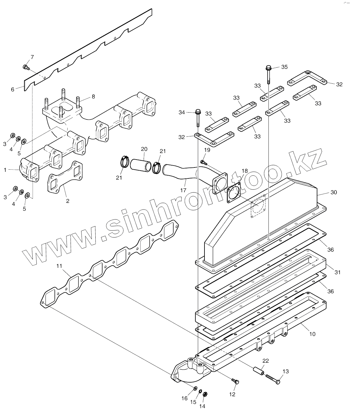 Каталог запасных частей к технике: Doosan SOLAR 210W-V. INTAKE AND EXHAUST MANIFOLD