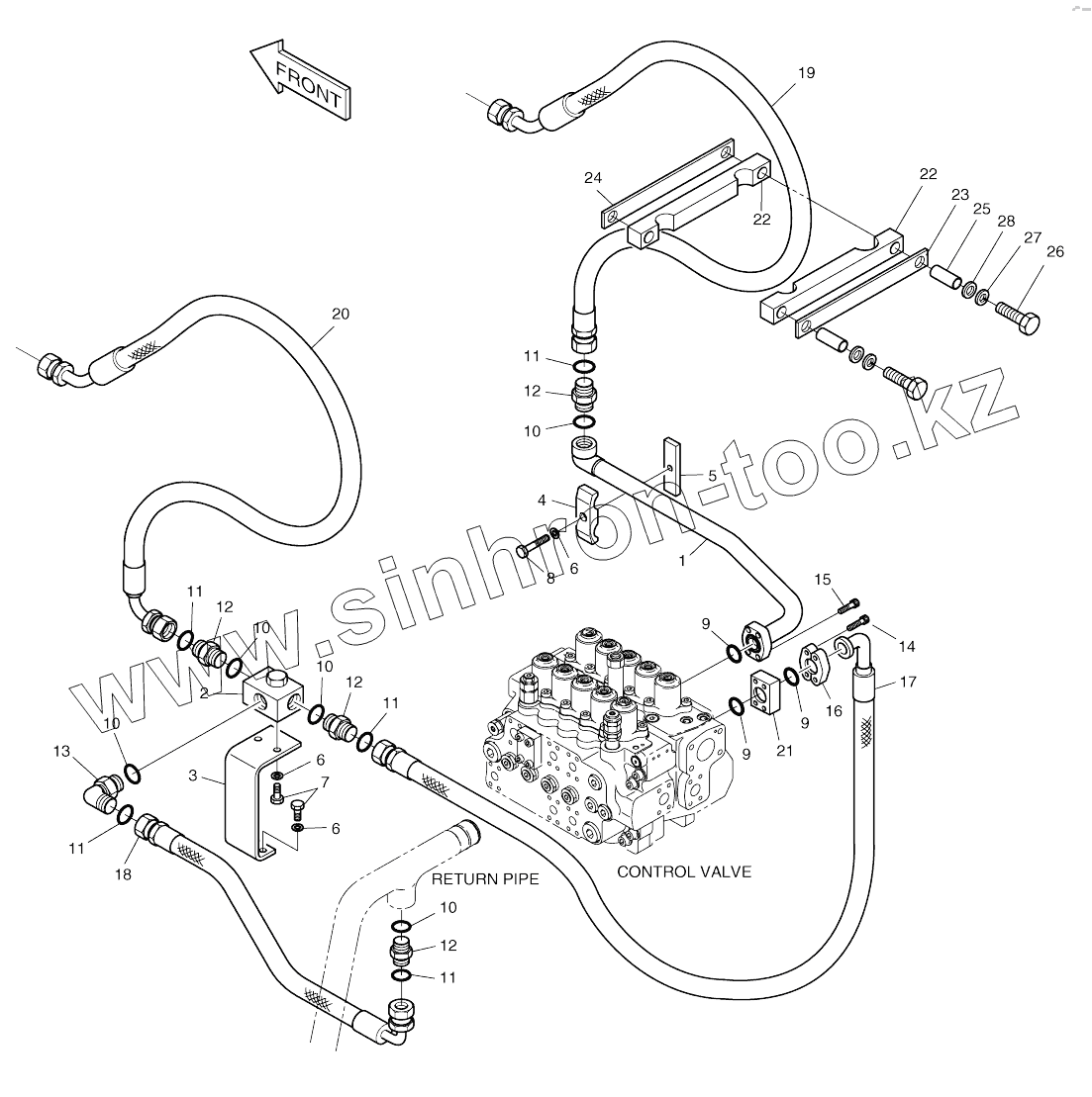 Каталог запасных частей к технике: Doosan SOLAR 210W-V. MAIN PIPING-ONE WAY