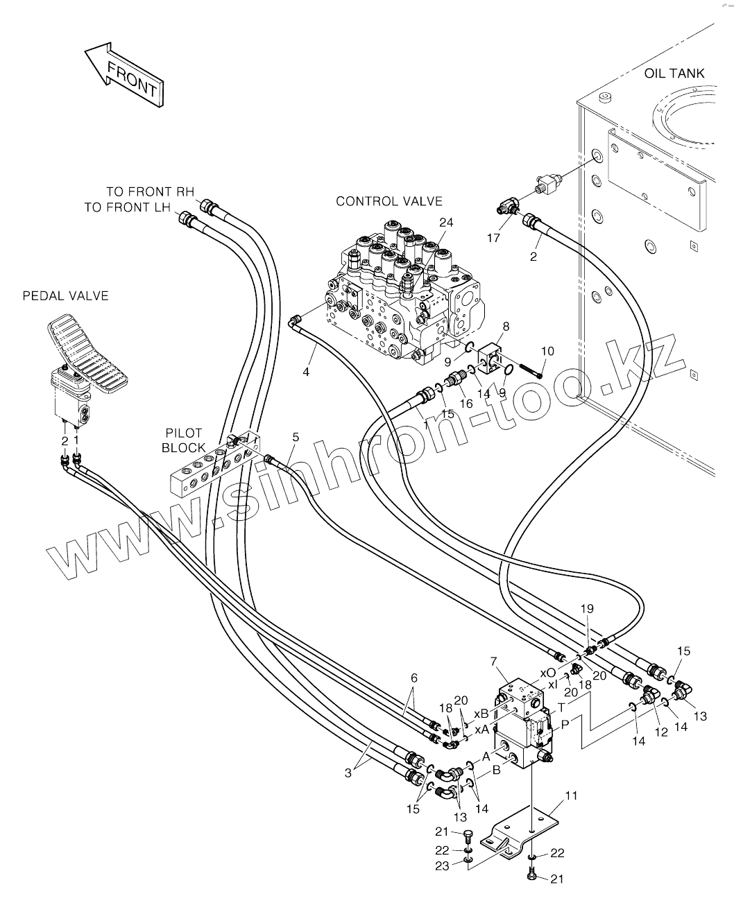 Каталог запасных частей к технике: Doosan SOLAR 210W-V. MAIN PIPING-TILTING (1001-1596)
