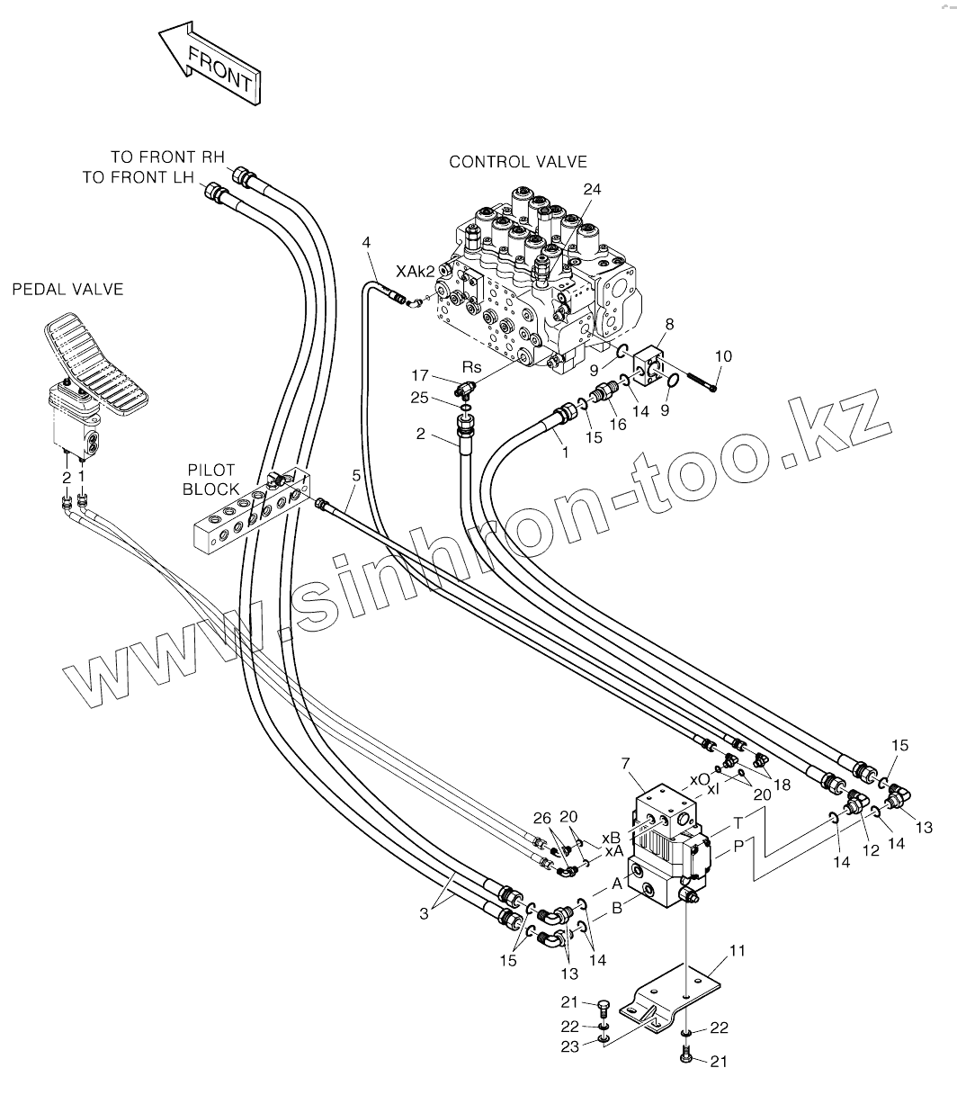 Каталог запасных частей к технике: Doosan SOLAR 210W-V. MAIN PIPING-TILTING (1597-)