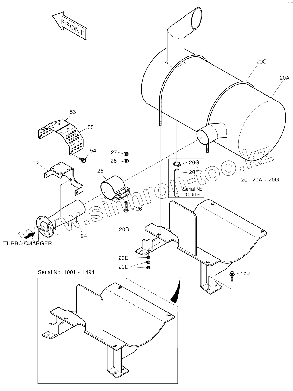 Каталог запасных частей к технике: Doosan SOLAR 210W-V. MUFFLER