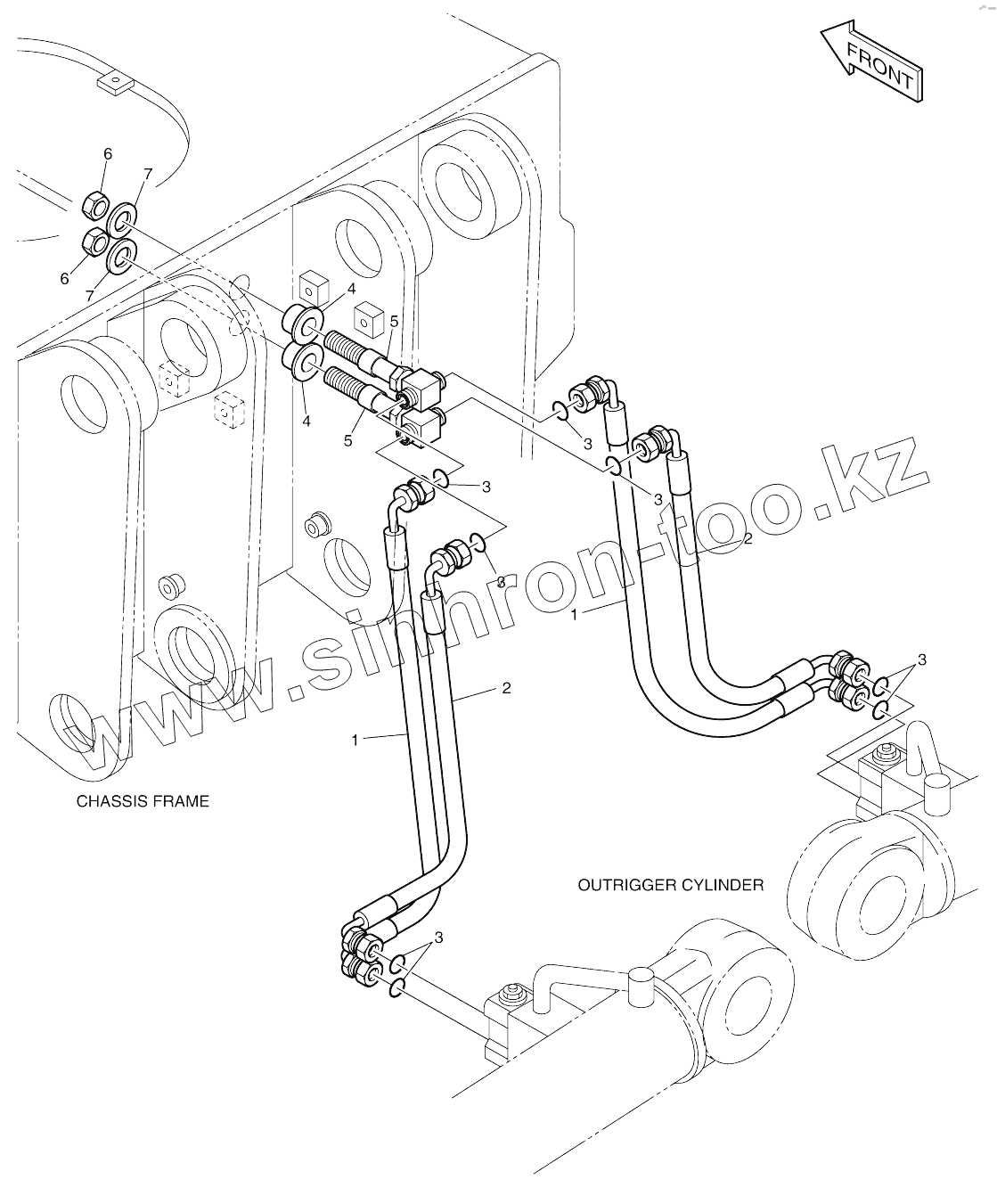 Каталог запасных частей к технике: Doosan SOLAR 210W-V. OUTRIGGER PIPING-REAR