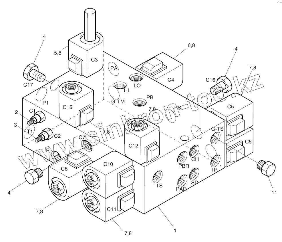 Каталог запасных частей к технике: Doosan SOLAR 210W-V. PILOT AND T/M SUPPLY VALVE