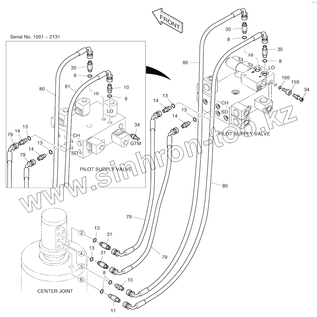 Каталог запасных частей к технике: Doosan SOLAR 210W-V. PILOT PIPING (10)