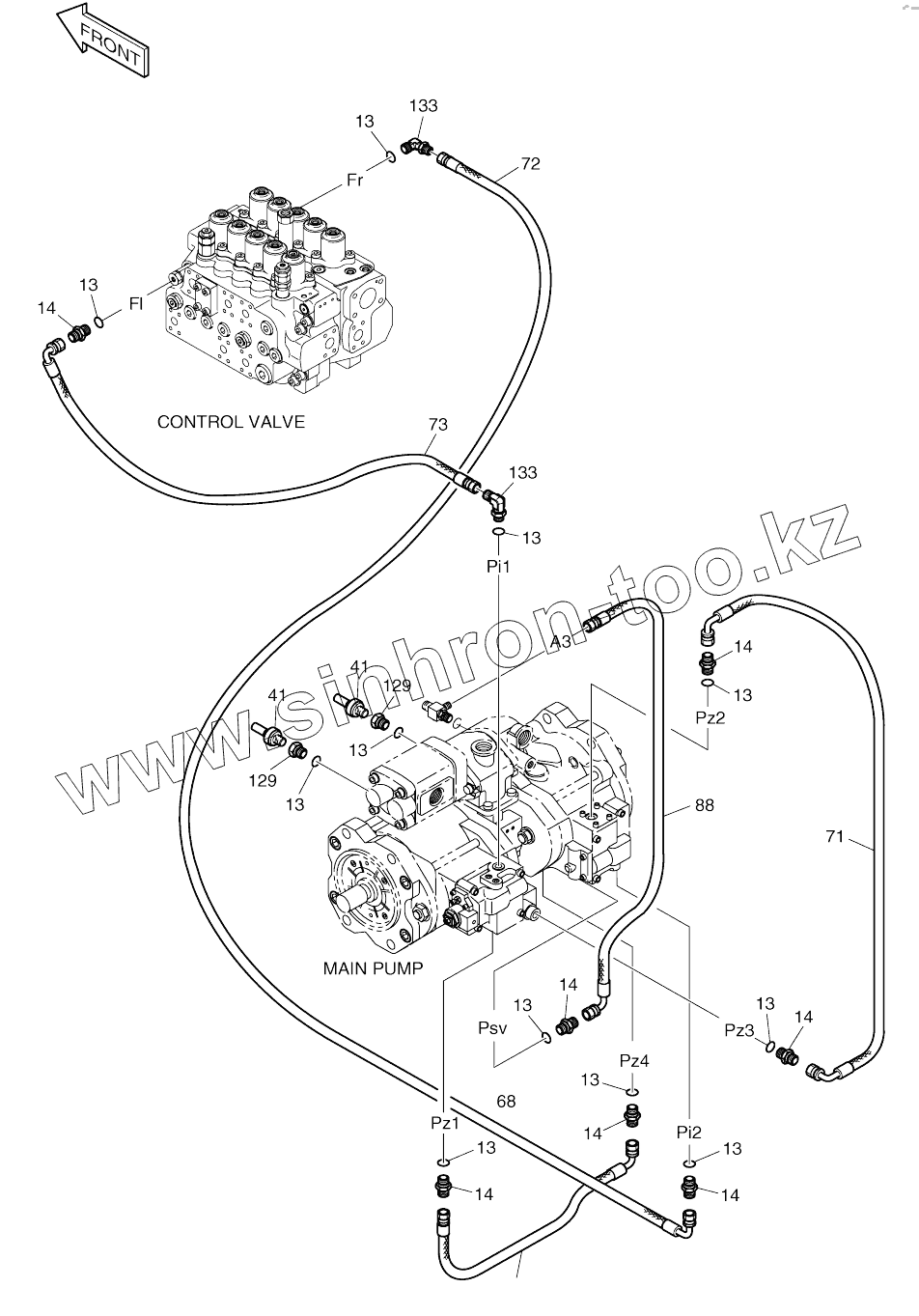 Каталог запасных частей к технике: Doosan SOLAR 210W-V. PILOT PIPING (13)